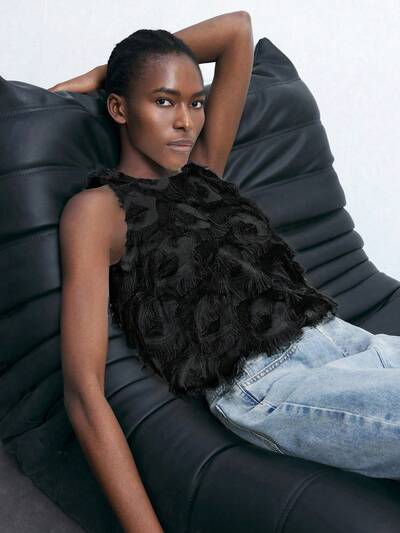 SHEIN Maija Casual Elegant Water-Soluble Lace Women's Casual Top, Suitable For Spring/Summer Vacation, Beach, Summer Wear, Independence Day St Patrick's Day Easter Party Top Beach Summer Holiday Vacation Beach Summer Holiday Beach Vacation Summer Going Out Graduation  Casual Holiday Beach Cruise Travel  Romantic, Fashion, Versatile; Suitable For Summer Vacation, Comfortable, Bohemian Style, Beach Wear, Simple Daily Wear, Country Style, Essential, Solid Color, Holiday Casual, Decent, Single Lady,Y2k