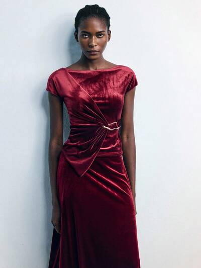 SHEIN Maija Classic Wine Top With Metal Decoration Button, Slim Fit, Suitable For Early Autumn Party Season Burgundy Tops For Women Wine Red Top Dark Red Top Maroon Top Velvet Top, Fall For Women,Winter For Women,Winter,Night Out,Going Out Tops Women, Night Out,Date Night,Old Money Style