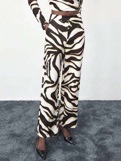 SHEIN Maija Women's Zebra Print Pocket Wide Leg Loose Casual Pants Fall Clothes For Women Going Out Bottoms Women's Dress Pants-60%