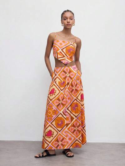 SHEIN Maija Orange digital bedruckte lässige weite Hose, vielseitig einsetzbar für Urlaub, Feiertage, Strand, Musikfestivals, Frühling & Sommer-47%