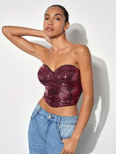 SHEIN Maija Damen Pailletten Rückenfrei Drapierter Ausschnitt Mini Weihnachtsparty Kleid, Silber, Herbst/Winter Valentinstag