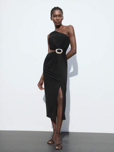 SHEIN Maija 2025 Herbst/Winter Neues asymmetrisches Kleid mit Ausschnitt an der Seite, rückenfreiem Design und Metallschnalle als Dekoration, knielang. Moderner, eleganter, urbaner, romantischer, würdevoller, minimalistischer Vintage-Stil. Geeignet für Hochzeitsgäste, Geburtstage, Halloween, Business-Lässig, Dates, Partys, Silvester, Weihnachten-23%