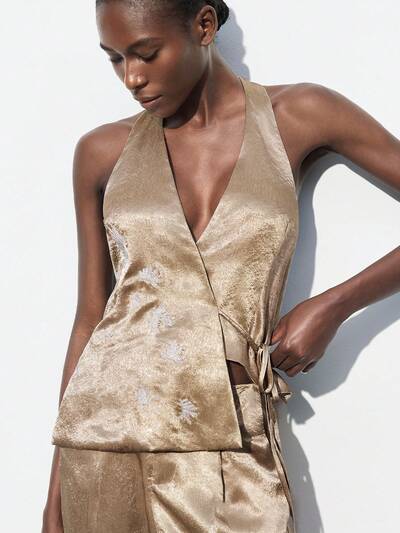 SHEIN Maija 2025 Neue lässige Mode Urlaub Frauen Neckholder Bindedesign ärmelloses Neckholder-Trägershirt, Party Cocktail Hochzeitsgast Old Money Stil, Musikfestival Abschlussfeier Brunch Outfit Business Casual Frau Western Flughafen für Frauen, Herbst für Frauen, Weihnachten