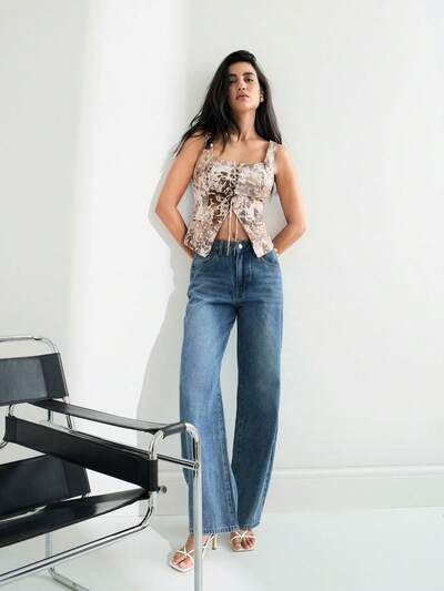 SHEIN Maija Damen Sommer Casual Urlaubs Paisley Muster Knotted Träger Camisole