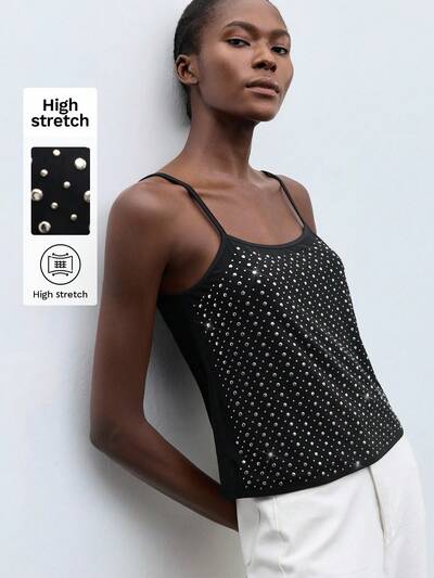SHEIN Maija Damen Sommer Nieten Dekor Locker Cami Top, Y2K Country Konzert Ausgehen Tops Club Sexy Nieten Top Halloween