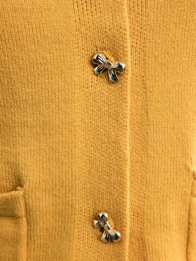SHEIN Maija Vielseitiger moderner urbaner Modeklassiker Damen Rundhals-Cardigan mit Frontverschluss, Saumbund und Manschetten, Farbverlauf-Garn-Design mit Metall-Dekoration, Business-Lässig-Büromode mit dezenter Vintage-Note, hochwertiger urbaner Pendler-Cardigan in Gelb
