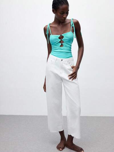SHEIN Maija Body de mujer de unicolor con pliegues y nudo circular sin mangas