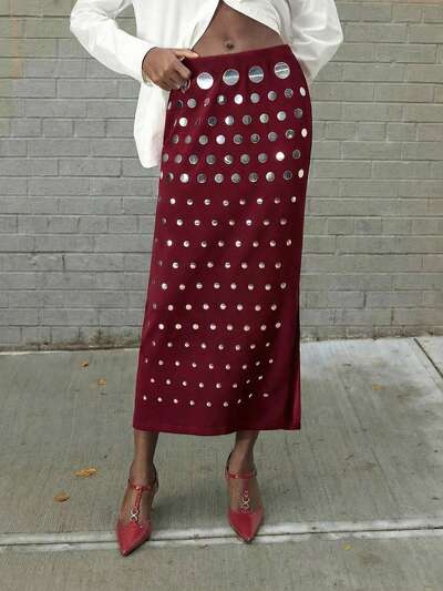 SHEIN Maija Falda larga con adornos de lentejuelas para mujer, adecuada para fiestas, ir al trabajo, estilo casual elegante, ideal para primavera/verano, Día de San Valentín