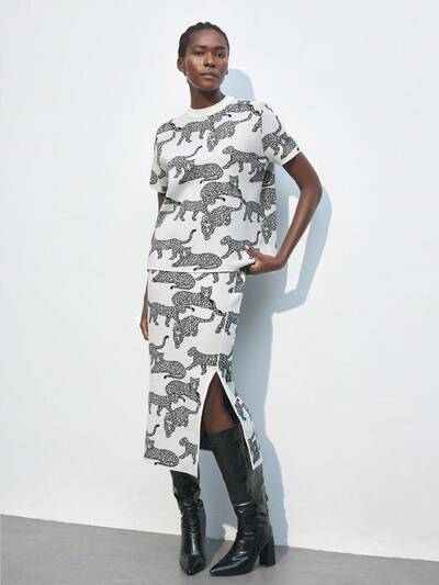 SHEIN Maija 2 piezas Conjunto de suéter de jacquard de leopardo para mujer