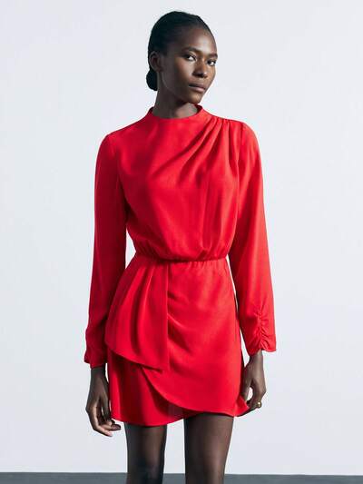 SHEIN Maija Vestido corto cruzado de unicolor, versátil y casual, con manga larga, puños fruncidos y hombros fruncidos, adecuado para principios de primavera y fiestas de San Valentín