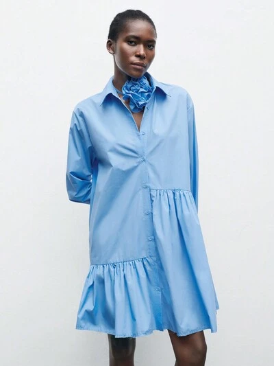 SHEIN Maija Vestido azul de mujer con detalles florales 3D, con fruncidos desmontables, corte asimétrico y silueta de línea A