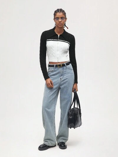 SHEIN Maija Cárdigan casual de mujer con bloques de color en el cuello-60%