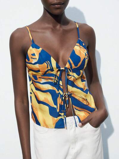 SHEIN Maija Camiseta casual de verano para mujer con estampado de cebra y lazo frontal-42%
