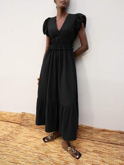 SHEIN Maija Vestido de verano 2025 nuevo con cintura elástica, volantes abultados y gran vuelo. Apto para festival de música, playa, resort, diario, casual, romántico, urbano, fiestas, bodas, graduación, vacaciones en la playa, estilo bohemio, vacaciones Ibiza, vacaciones de dopamina, mismo estilo que resort, atmósfera exótica, rural, festival de música occidental-60%