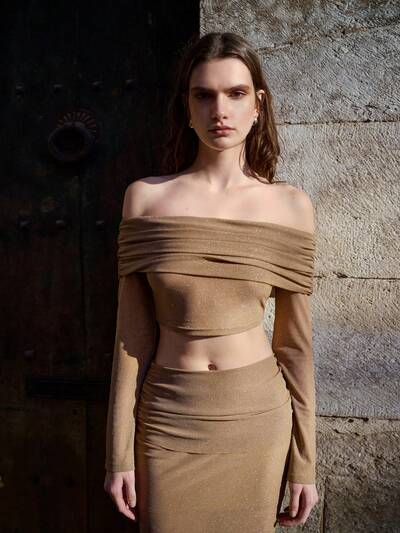 SHEIN Maija Conjunto de dos piezas de estilo nuevo para primavera y verano con top de un hombro de punto con lentejuelas color caqui y falda entallada sexy. Moderno y elegante, adecuado para uso diario casual, salidas, fiestas de vacaciones y bodas.-28%