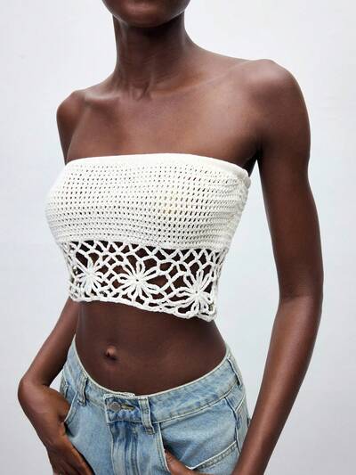 SHEIN Maija 2025 Nueva primavera verano Mujer Suéter de flores a crochet hueco de hombros caídos, apropiado para boda invitado, brunch, festival musical, fiesta casual, elegante, vacaciones, graduación, uso diario, versátil