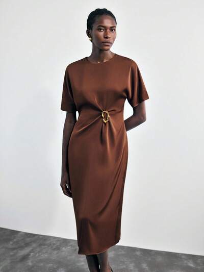 SHEIN Maija Vestido entallado con cuello redondo, decoración de hebilla de acetato falso y estilo de alas de murciélago para mujeres, adecuado para la temporada de transición, casual y urbano
