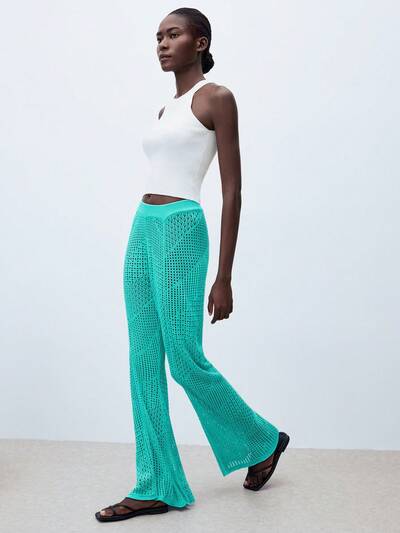 SHEIN Maija Pantalones de punto acampanados de unicolor con diseño calado para mujeres