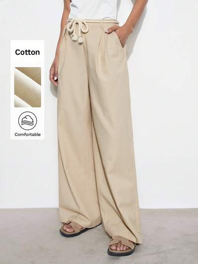 SHEIN Maija Pantalones anchos de pierna ancha con cintura de lazo estilo bohemio para mujer, con bolsillos laterales, para vacaciones de verano