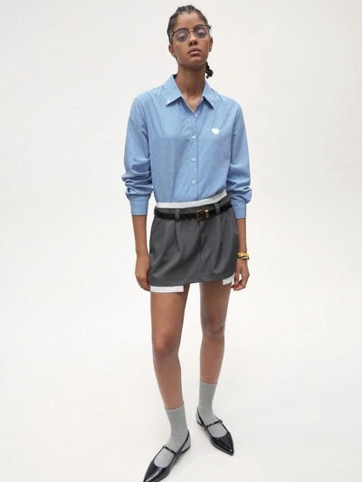 SHEIN Maija De vuelta a la escuela Estilo informal y universitario de tela Oxford azul plisada recortada
