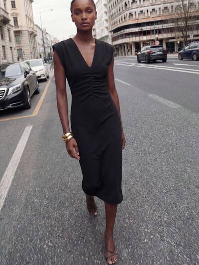SHEIN Maija Robe femme à col en V noir avec épaulettes larges, design plissé à l'avant. Élégante pour le carnaval, la Saint-Valentin, les fêtes, l'école, les festivals de musique, les événements formels, les déplacements urbains, le bureau, le quotidien, les rendez-vous romantiques, le style décontracté années 90, le Nouvel An, les vacances de printemps, les anniversaires, la plage, la remise des diplômes, la mode minimaliste. Convient pour les invités de mariage, les hôtes, les rendez-vous, les rassemblements, les concerts, les représentations sur scène, les brunchs, les garden-parties, les aéroports, les vacances d'été