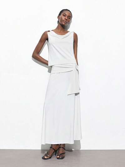 SHEIN Maija Nouvelle jupe blanche de printemps et d'été avec boucle métallique ronde à la taille. Décoration urbaine, de vacances, moderne, élégante et romantique. Convient pour les sorties, les fêtes, les festivals de musique et le style argent vieux.