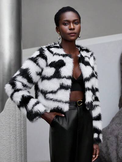 SHEIN Maija Veste de travail sans col à col en V avec blocage de couleurs bicolore pour femmes en automne/hiver