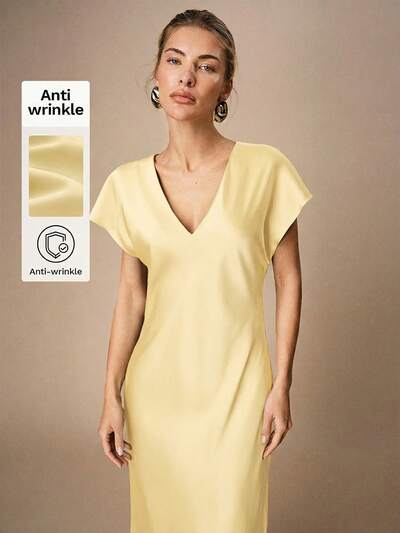 SHEIN Maija Robe mi-longue élégante de couleur unie avec taille cintrée, pour l'été