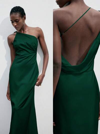 SHEIN Maija Nouvelle robe de cocktail asymétrique plissée à l'épaule, ourlet asymétrique, printemps/été. Élégante pour soirée, Saint-Valentin, rentrée scolaire, festival de musique, occasion sociale formelle, trajet urbain