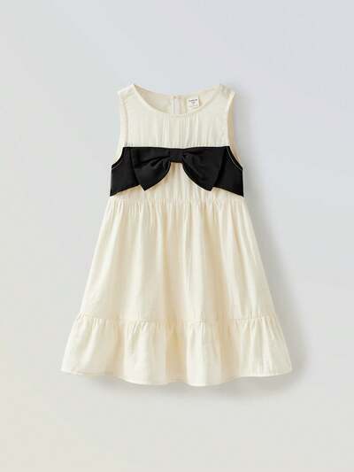 Robe sans manches col rond pour jeune fille avec décoration nœud 3D