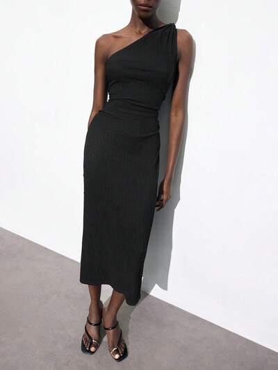 SHEIN Maija 2025 Nouvelle robe mi-longue d'automne/hiver avec découpe asymétrique sur le côté, dos nu et décoration de boucle métallique. Style moderne, élégant, urbain, romantique, digne et minimaliste. Convient pour les invités de mariage, anniversaire, Halloween, tenue de bureau décontractée, rendez-vous, fête, Nouvel An, Noël