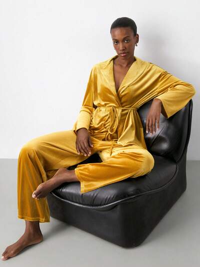 SHEIN Maija Tuta in velluto a tinta unita minimalista da donna con top a maniche lunghe e pantaloni, adatta per uso casual quotidiano