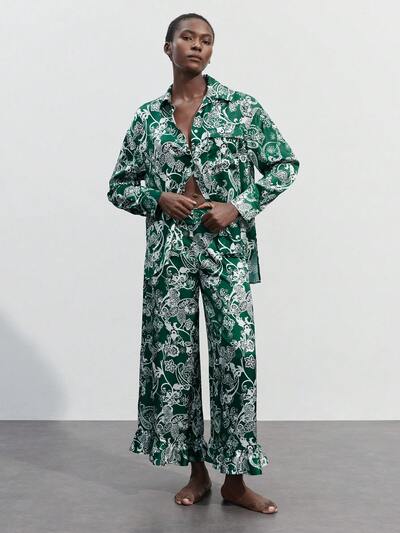 SHEIN Maija 2 pezzi, completo di camicetta casual boho a fantasia floreale e pantaloni con volant, per donna, adatto per le vacanze autunnali