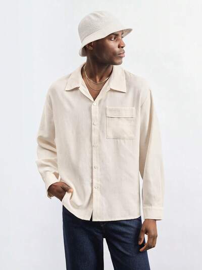 SHEIN Maija Camicia casual da uomo monopetto a manica lunga, di colore uniforme e vestibilità ampia