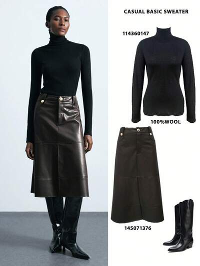 SHEIN Maija 2025 Classico urbano Maglia a collo alto nera con maniche extra lunghe e vestibilità aderente, adatta per l'inizio dell'autunno, il ritorno a scuola, l'abbigliamento invernale da donna, Maija Autunno Inverno 2025, Maglione da donna Autunno Inverno, Costume di Ognissanti, Donna Ognissanti, Maglione natalizio, Top nero