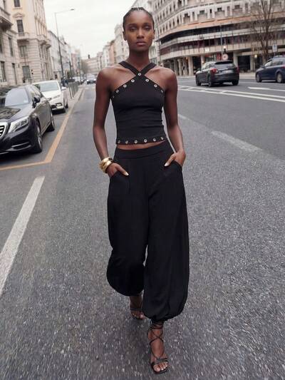 SHEIN Maija 2025 Blusa da donna con design metallico urbano e dettagli con occhielli, adatta per serate di gala di San Valentino, estate, vacanze di primavera, primavera, San Valentino, spiaggia, festa, elegante, vacanza, casual