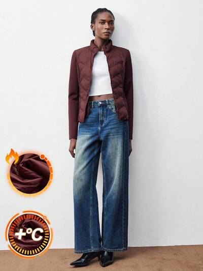 SHEIN Maija Giacca casual invernale da donna con zip frontale e maniche lunghe tinta unita