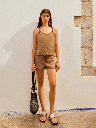 SHEIN X Sofía Suescun SHEIN Maija Crop top estivo/primaverile 2025 da donna con laccetti alla nuca, adatto per casual, romantico, vacanza in città, festival musicali, spiaggia, uso quotidiano, feste, matrimoni, lauree