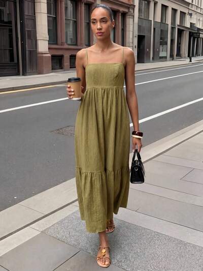 SHEIN Maija Abito da donna con spallina a spaghetti, orlo con volant, tinta unita, adatto per vacanze