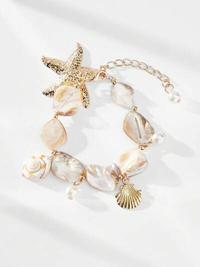 SHEIN Maija Bracciale boho asimmetrico con pendente di conchiglia e stella marina decorati con perline