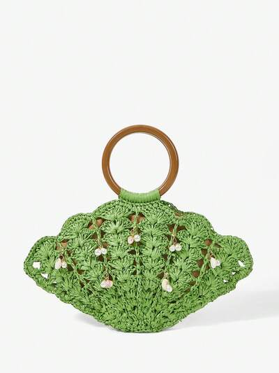 SHEIN Maija Borse a mano da donna, borse di paglia, borse intrecciate in paglia, con finti perle, ornamenti a tema marino, alla moda, eleganti, semplici, personalizzabili, versatili, per spiaggia, vacanza, festa, estate, mare, festa in spiaggia-44%