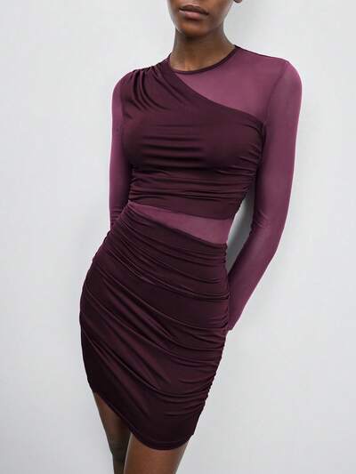 SHEIN Maija 女性用 無地メッシュパッチワーク 長袖ミニドレス