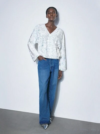 SHEIN Maija 女性用 キラキラ ラップ式 ルーズ長袖カーディガン、パーティー/休日用、秋冬-60%