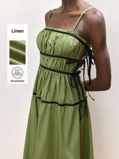 SHEIN Maija MAIJA サマー ブロード レース カットアウト ティアード フリル マキシドレス
