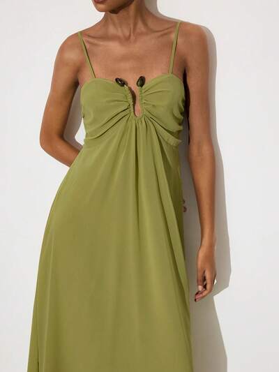 SHEIN Maija レディース ソリッドカラー プリーツ カジュアル パーティー&トラベルドレス スパゲッティストラップ-22%