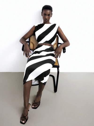 SHEIN Maija ウィメンズブラックパッチワークヘムデザイン早春モダンアーバンエレガントファッションセンス汎用性のあるソフトで快適なボディコンブラカップスタイルスリーブレストップ、調節可能な肩ストラップ、シアーオーガンザスカートバックスリット付きミディスカート2ピースセット、多用途ビジネスカジュアルクルーズウェア、ロマンチックでシックなクラシックハイエンドコーデ-26%