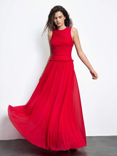 SHEIN Maija ボヘミアンスタイル オーバーサイズ フレアスカート レッドドレス、秋、バケーション、休日、デート、お出かけに適しています