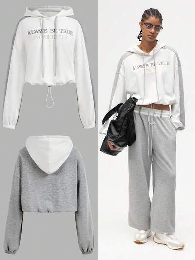 SHEIN Maija 自分らしくあり続けろ ドロップショルダー ドロストスウェットシャツ パーカー-60%