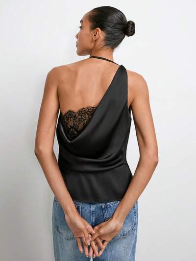 SHEIN Maija レース パッチワーク ホルターネック トップス 無地 エレガント レディース 夏-32%