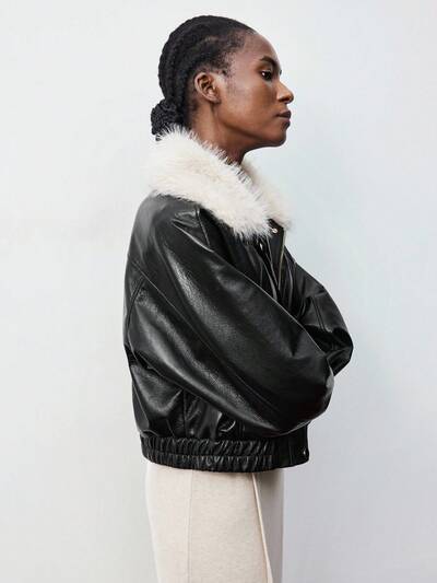 SHEIN Maija 女性用ファッショナブルな人工毛皮カラー ショートジャケット、秋冬用-23%